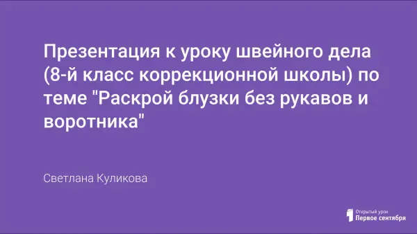 Презентация выполнена к теме урока "Раскрой блузки без рукавов и воротника".
