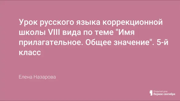 Урок русского языка знакомит учащихся 5-го класса с общим значением имен прилагательных, помогает учащимся с ограниченными возможностями углубить представление о роли в нашем языке слов, обозначающих признаки предметов. Использование мультимедиа на уроке помогает активизировать познавательную деятельность. Урок с использованием презентации вызывает у учащихся эмоциональный отклик, воспитывает бережное отношение к природе.