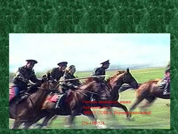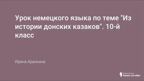 Цель урока: научить учащихся сообщать на немецком языке о донских казаках, как об одном из народов России, об их истории, быте, традициях, национальных героях, типичных чертах казаков (используя личный опыт, изученную по теме лексику и материалы текстов).