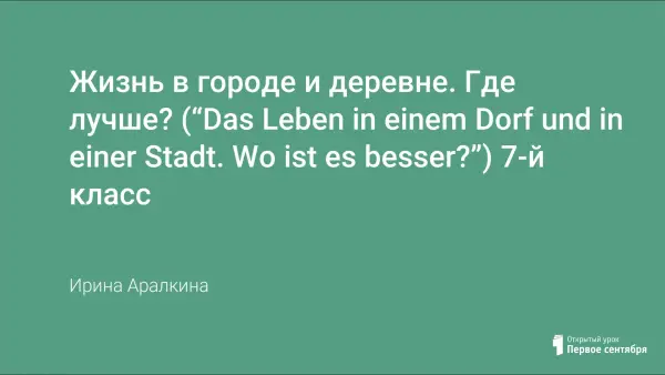 Тип урока: урок обобщения и систематизации ранее пройденного лексического и грамматического материала. Цель урока: научить учащихся сравнивать жизнь в деревне и в городе на немецком языке.