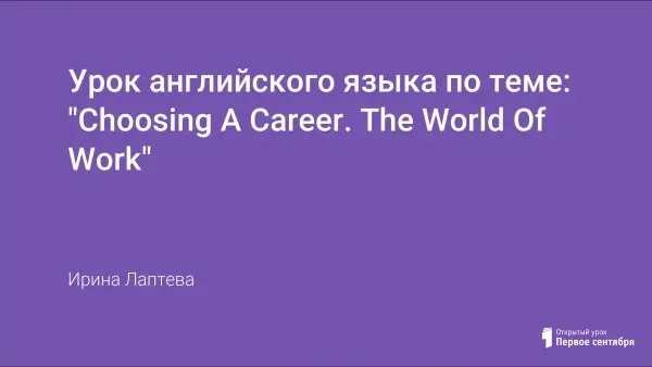 Представленный урок проводился в 9-м классе и является заключительным по теме "Choosing a career. The world of work".