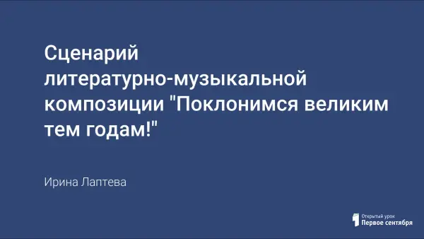 Сценарий литературно-музыкальной композиции включает в себя тексты песен и стихотворения о Великой Отечественной войне, которые вдохновляли солдат на подвиг и давали надежду на Победу и счастливую жизнь.