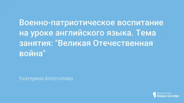 Цель урока: установление межпредметных связей путем практического применения языковых и социокультурных компетентностей посредством иностранного языка. Интегрированный урок по английскому языку и истории посвящен Великой Отечественной войне.