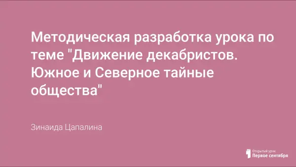 Урок разработан для реализации требований нового ФГОС, направлен на закреплений знаний по теме «Декабристское движение». Особенностью учебного занятия является работа с большим количеством исторических источников. Урок спланирован по методу блочной системы, разработанной д.п.н. Иоффе А.Н. Урок подойдет для 8-го гуманитарного класса и 10-го класса. Количество часов на тему 2.