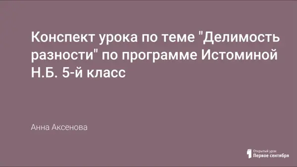 Урок-экскурсия знакомит учащихся со свойством делимости разности; учит применять свойства делимости суммы (разности) при решении различных математических задач и для доказательства утверждений.