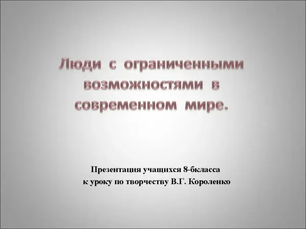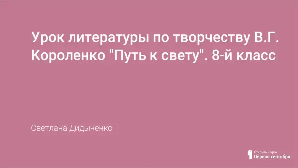 На уроке изучается философская тема произведений В.Г. Короленко. Учащиеся учатся видеть позицию автора в художественном тексте; создают учебный проект с литературным источником; раскрывают содержание логических и литературоведческих понятий.