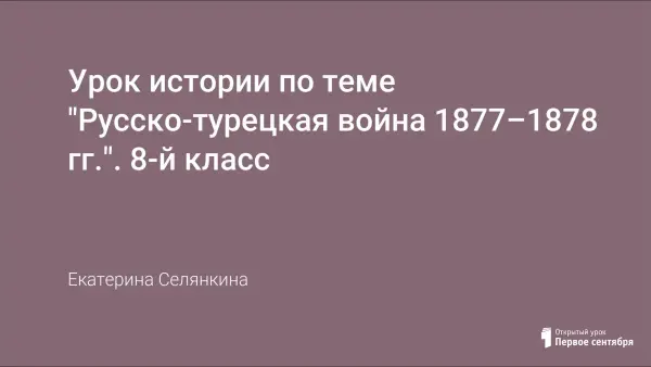 Цель урока: на основании фактов истории сформировать представление об этапах, причинах, итогах русско-турецкой войны; формировать интерес к истории своего государства.