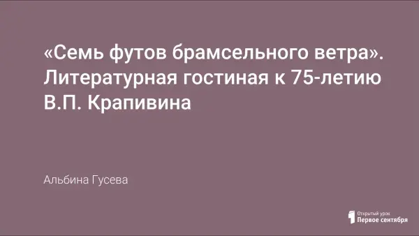 Цель литературной гостиной: формирование у детей интереса к творчеству писателя В.П. Крапивина.