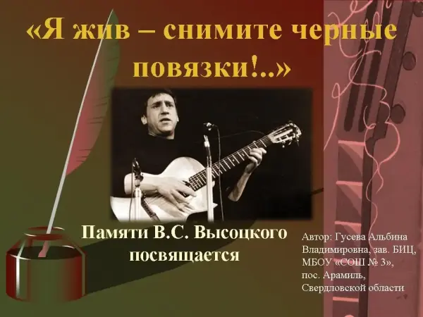 Цель занятия: познакомить учащихся с творчеством В.С. Высоцкого, подвести их к осмыслению нравственных понятий «честь», «долг».