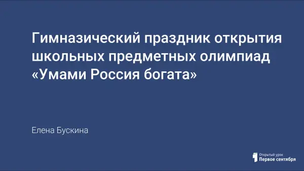Ежегодно с 2008 года в гимназии проводится торжественное открытие школьных предметных олимпиад. В течение месяца по графику проходят олимпиады по различным предметам. представляет Представлено открытие этапа предметных олимпиад, который в гимназии иемеет название «Умами Россия богата».