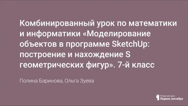 Комбинированный урок по математики и информатики «Моделирование объектов в программе SketchUp: построение и нахождение S геометрических фигур». 7-й класс