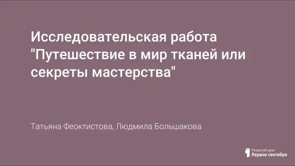 Исследовательская работа "Путешествие в мир тканей или секреты мастерства"