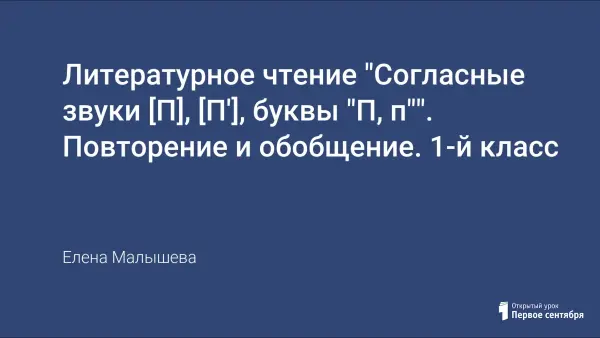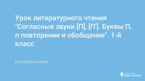 Урок применения знаний, умений и навыков по литературному чтению построен на совместной деятельности учащихся, повторяет и обобщает полученные знания о звуках п и п’; буквах "П, п". Учащиеся выделяют новые звуки, дают им характеристику, а также читают слова с новыми буквами, развивая речь.