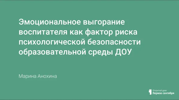 В статье представлен теоретический обзор вопросов психологической безопасности образовательной среды. Рассмотрена проблема эмоционального выгорания личности педагога как фактор риска безопасности образовательной среды, даны рекомендации по профилактике эмоционального выгорания. Представлены основные направления деятельности психологической службы по созданию психологически безопасной образовательной среды дошкольного учреждения.
