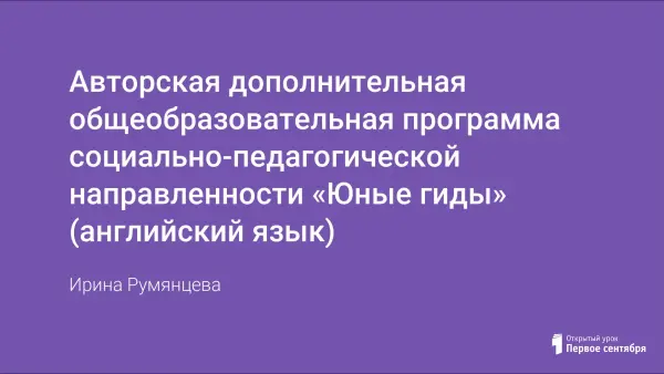 Программа «Юные гиды» на английском языке адресована школьникам 9–11 лет, желающим заниматься иностранным языком во внеурочное время и научиться рассказывать зарубежным гостям о достопримечательностях столицы нашей Родины Москвы.