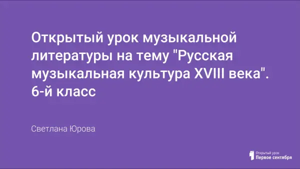 Цель урока: сделать обзор стилей и направлений в русском искусстве XVIII века с акцентом на музыкальную культуру, подготовить учащихся к изучению творчества Д.С. Бортнянского.