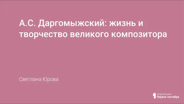 Информационный материал для урока музыкальной литературы или внеклассного мероприятия посвящен творчеству великого композитора XIX века А.С. Даргомыжского в детской музыкальной школе, школе искусств.