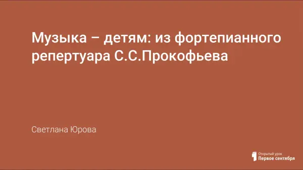 Данная работа представляет собой сценарий внеклассного мероприятия для детей и взрослых, посвящённый фортепианному творчеству выдающегося советского музыканта XX века – пианиста и композитора С.С.Прокофьева (на примере фортепианного цикла «Детская музыка»).
