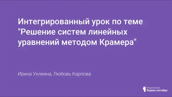 Интегрированный урок по теме "Решение систем линейных уравнений методом Крамера"