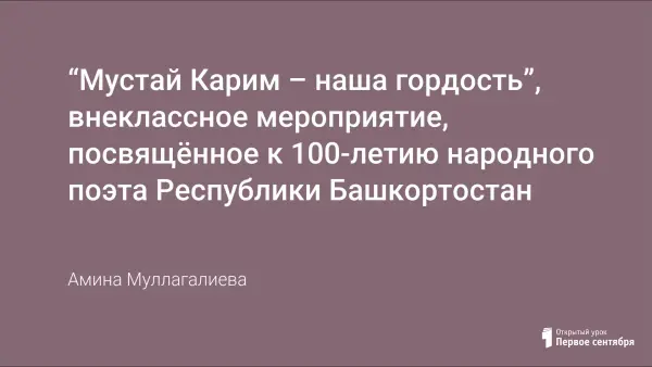 “Мустай Карим – наша гордость”, внеклассное мероприятие, посвящённое к 100-летию народного поэта Республики Башкортостан