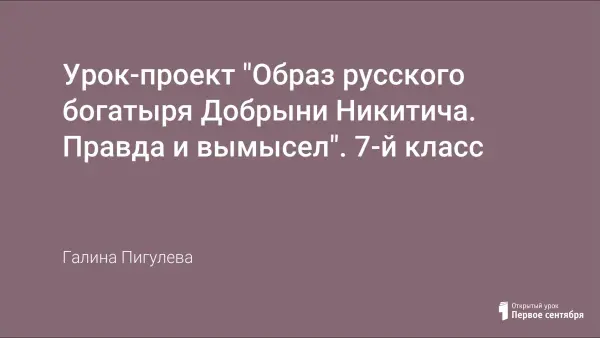 Урок-проект "Образ русского богатыря Добрыни Никитича. Правда и вымысел". 7-й класс