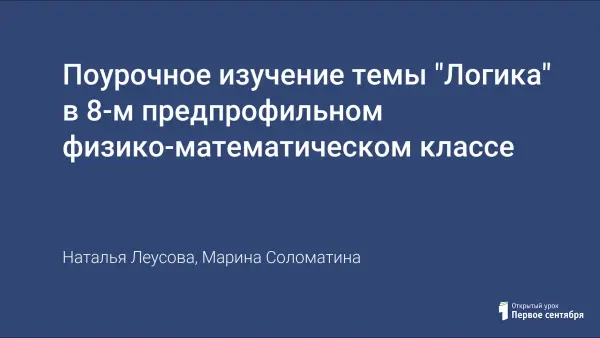 Поурочное изучение темы "Логика" в 8-м предпрофильном физико-математическом классе