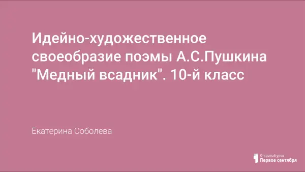 Цели и задачи урока: раскрыть идейное и художественное своеобразие поэмы А.С.Пушкина «Медный всадник»; проследить развитие образа Петра Первого в творчестве А.С.Пушкина; развивать умение работать с информацией, обобщать ее и систематизировать; развивать творческие способности учащихся через выразительное чтение, умение анализировать поэтический текст.