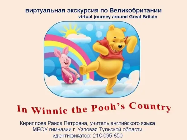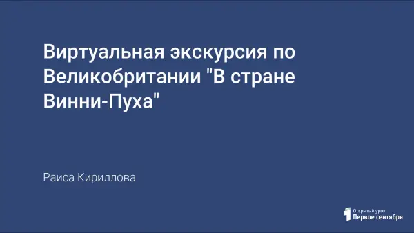 Виртуальная экскурсия по Великобритании знакомит младших школьников с миром зарубежных сверстников. Предназначена для уроков английского языка с высоким уровнем обученности детей 4–5-х классов общеобразовательной школы, а также может быть использована и на внеклассном мероприятии (кружок, Неделя английского языка).