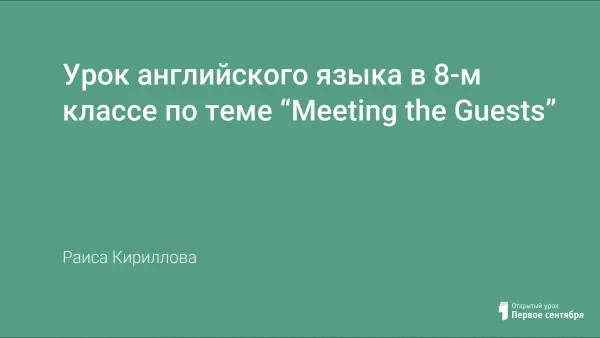 Тема урока “Meeting the Guests” посвящена 19 Всемирному фестивалю молодёжи и студентов,что позволяет создать благоприятный режим для практического применения английского языка. Дети поставлены в такие условия, когда вынуждены пользоваться языком и как средством общения, и как средством извлечения информации.