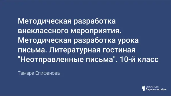 Методическая разработка внеклассного мероприятия. Методическая разработка урока письма. Литературная гостиная "Неотправленные письма". 10-й класс