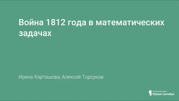 В ходе урока учащиеся определяют, как тема «Война 1812 года» отразилось в математических задачах, приобщаются к решению занимательных задач, изучают предмет «история» с другой стороны. Урок содержит познавательный исторический материал. Развивает творческие способности учащихся в решении занимательных задач.