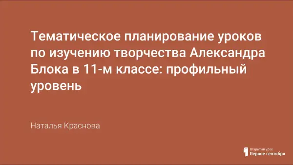 Проблема изучения творчества Александра Блока в профильном классе связана прежде всего с многообразием поэтического наследия поэта Серебряного века. Погружение в мир образов невозможно без анализа поэтической «Я-концепции» любого автора. У А.Блока особенно ярко выражена индивидуальность лирического героя. Предлагаемая система уроков позволит учителю подчеркнуть широту восприятия мира блоковского героя через сравнение с концепциями других поэтов.