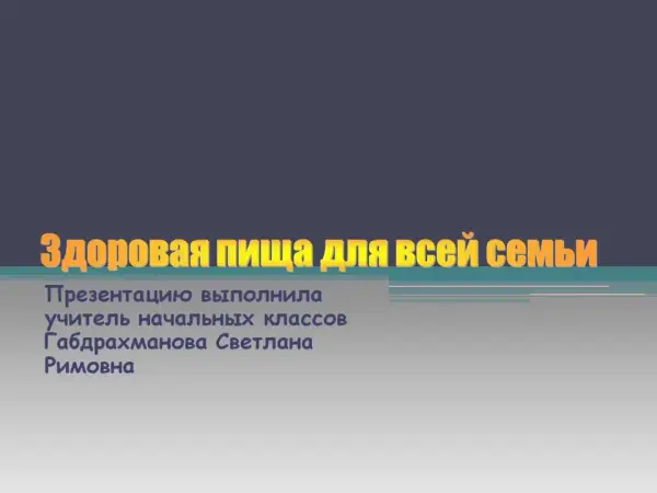 Классный час на тему "Здоровая пища для всей семьи". 1-й класс