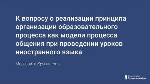 В статье раскрывается содержание принципа организации образовательного процесса как модели процесса общения при проведении урока иностранного языка. Этот принцип многогранен, он пронизывает абсолютно все аспекты урока. Атмосфера общения является ведущей чертой урока иностранного языка. Создание этой атмосферы во многом зависит от профессиональной компетентности педагога. О качествах и умениях учителя как речевого партнера также напоминается в данной статье.