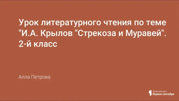 Урок во 2-м классе знакомит с особенностями басни И.А. Крылова. Цель: отличать басню от другого литературного произведения.