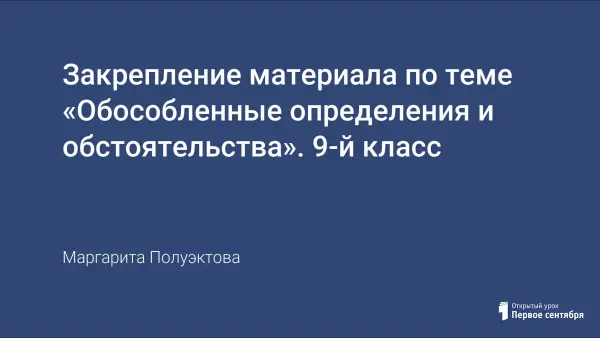 Цели урока: уточнить и закрепить понятия об обособлении, группах и признаках обособленных членов предложения; закрепить правила пунктуации при обособленных членах предложения.