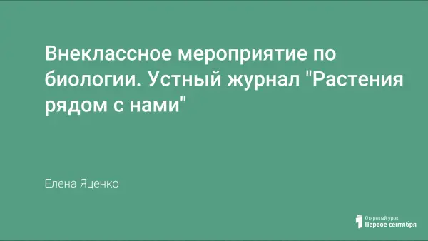 Материал выполнен в виде устного журнала, состоящего из нескольких страниц, рассчитан на учащихся 6-7-х классов. Каждая страница содержит данные, связанные с растениями, их значением для окружающей среды и человека. Большой упор сделан на растения данной местности, "Растения под охраной", опасные растения.