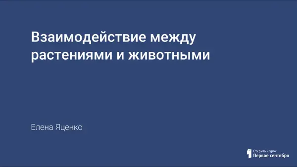 Разработка содержит материал по экологии, при изучении биотических связей и рассматривает взаимодействия между животными и растениями. Рекомендуется использовать на уроках в 5-м классе, а так же можно использовать фрагменты и в начальной школе. Материал предоставлен в игровой форме, в виде заочной экскурсии, что должно способствовать лучшему усвоению материала обучающимися.