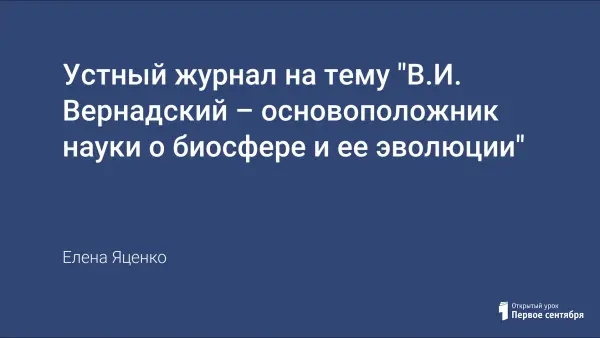 Устный журнал на тему "В.И. Вернадский – основоположник науки о биосфере и ее эволюции"