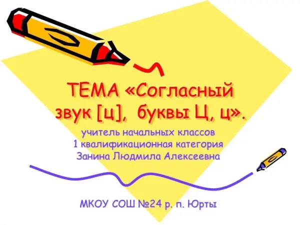 Цель урока: ознакомление с твёрдым согласным звуком [ц], буквами Ц, ц; обучение чтению слов, предложений и текстов с изученной буквой.