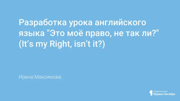 На уроке «Это моё право, не так ли?» учащиеся актуализируют знания из курса обществознания, дают определения основных понятий на английском языке, расширяя словарный запас. Результатом деятельности учащихся на уроке является систематизация знаний о правовом статусе личности в РФ и во всем мире, сформированность правовой компетентности в части защиты основных прав и свобод личности, расширение страноведческих знаний по теме «Граждановедение»; совершенствование умений и навыков устной речи.