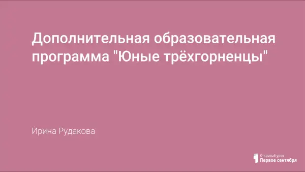 Занятие входит в третий раздел «Экологическое воспитание дошкольников» дополнительной образовательной программы «Юные трехгорненцы», предназначенной для детей от 3 до 7 лет, составленной координатором представленного проекта.