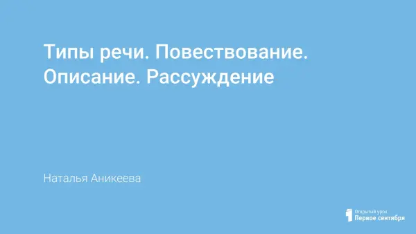 Конспект урока выполнен в рамках образовательной технологии «Достижения прогнозируемых результатов» и соответствует требованиям к структурированию учебной информации с точки зрения новой образовательной парадигмы – учитель управляет процессом учения школьника в личностно-ориентированном образовательном процессе. Цель урока: сформировать умение различать типы речи.