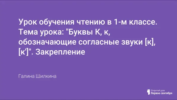 Урок обучения чтению в 1-м классе. Тема урока: "Буквы К, к, обозначающие согласные звуки [к], [к']". Закрепление