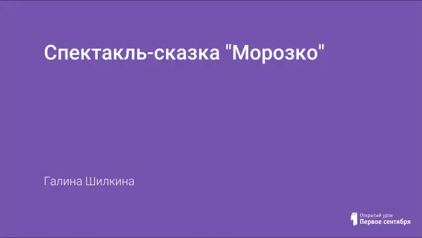Сценарий предназначен для учащихся 4-го класса. Спектакль «Морозко» - это новая версия знакомой каждому с детства удивительной сказки, которая заставляет зрителей и смеяться, и сопереживать, и порадоваться за главную героиню. Злая мачеха и её дочь стремятся извести работящую и доброжелательную Алёнушку. Но добрый и мудрый Морозко ценит и вознаграждает доброту и вежливость падчерицы, наказывает невоспитанность и алчность Марфуши. В спектакле задействованы все учащиеся класса.