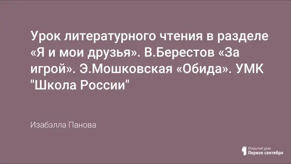 В статье дан разбор и анализ произведений В.Берестова «За игрой» и Э.Мошковской «Обида».