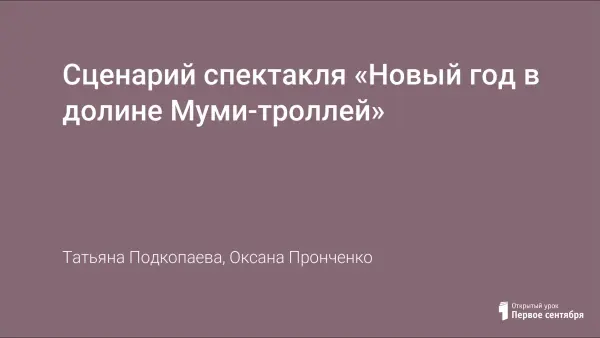 Представлен сценарий праздника, посвященного встрече Нового года. «С первой выпавшей снежинкой вся долина Муми-Троллей, вместе с ее обитателями, каждый год впадает в спячку. Но не в этот раз. В этот раз Муми-Тролль никак не мог уснуть».