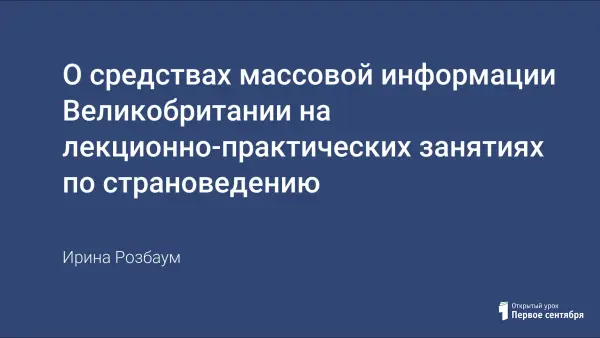 Статья представляет собой разработанное автором лекционно-практическое занятие (1 ч 20 мин) по теме " Радио и телевидение Великобритании" для студентов 3 курса педагогического училища, получающих дополнительную подготовку в области иностранного языка (английского). Целью занятия является расширение общего, социального и культурного кругозора студентов. Учебный аспект цели - развитие речевых умений и навыков диалогической, монологической и полилогической речи. Занятие предполагает ряд предваряющих домашних заданий.