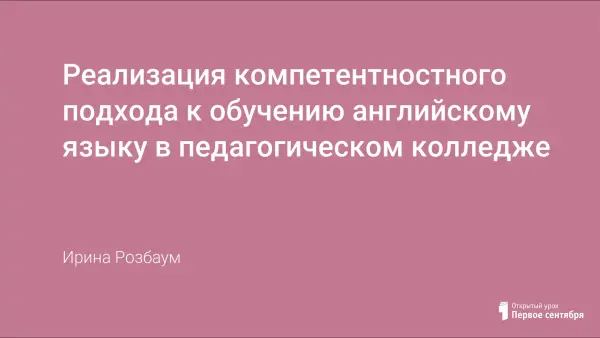 Данная статья представляет собой самоанализ педагогической деятельности преподавателя английского языка, осуществляющего реализацию компетентностного подхода в профессиональном образовании в рамках преподаваемых дисциплин (английский язык, страноведение, детская литература стран изучаемого языка, методика обучения иностранному языку в начальных классах).