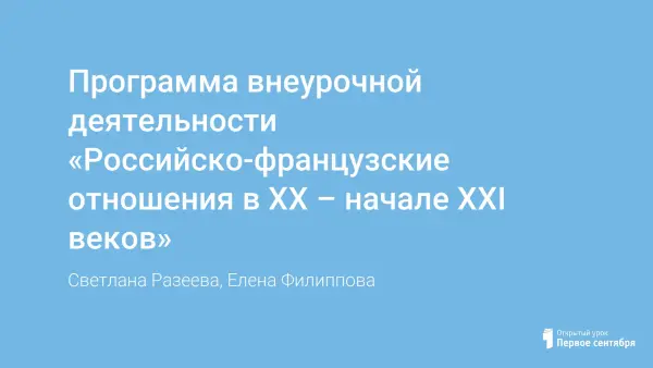 Программа внеурочной деятельности «Российско-французские отношения в XX – начале XXI веков»